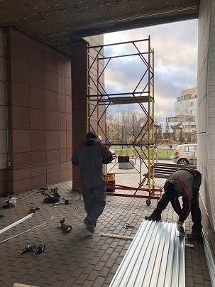 ..2020.25.09 Плановые работы по восстановлению сайдинга в арке 14-го подъезда.