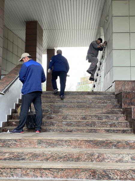 Работы по приведению в порядок фасада МКД в весенний период.